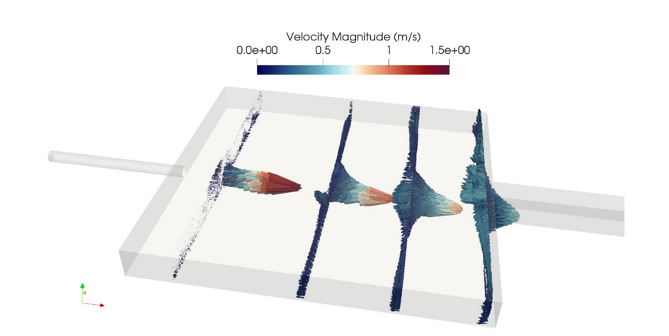 High-resolution CFD simulations are employed to resolve three-dimensional flow structures and spatial variability within complex geometries. Analyses capture detailed velocity fields, pressure distributions and flow separation phenomena that are critical for understanding system behaviour at local and global scales.